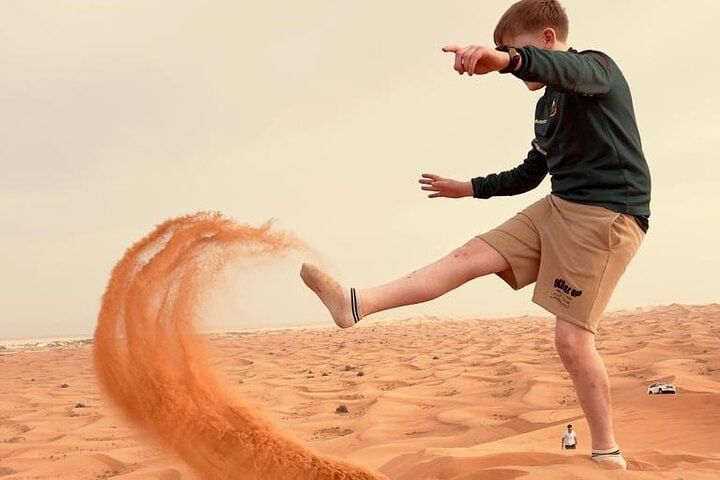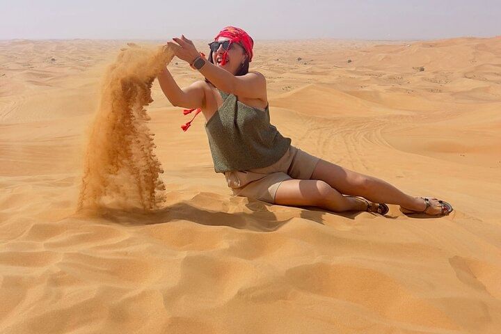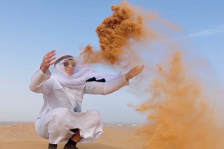 A journey to the Magnificent Arabian desert in the late afternoon to explore its wilderness. A fun and adventure packed trip starting with a furious dune bashing drive on a 4 X 4 vehicle. Witness the golden shrines of the setting sun on a camel, sand board the desert waves and a visit to a renowned desert camp for the night party including Belly dance, Fire show, Tanoura dance, BBQ Buffet, Henna painting, Falcon experience and various other entertainments.