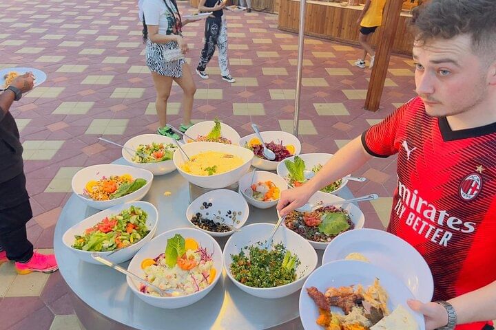 A journey to the Magnificent Arabian desert in the late afternoon to explore its wilderness. A fun and adventure packed trip starting with dune bashing drive on a 4 X 4 vehicle. Witness the golden shrines of the setting sun on a camel, sand board the desert waves and a visit to a renowned desert camp for the night party including Belly dance, Fire show, Tanoura dance, BBQ Buffet, Henna painting, Falcon experience and various other entertainments.
